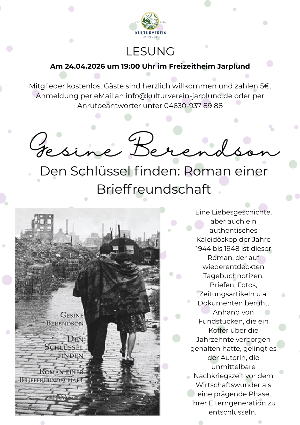 Am 24. April veranstaltet der Kulturverein Jarplund um 19 Uhr eine Lesung von Gesinde Berendson aus dem Buch "Den Schlüssel finden-Roman einer Brieffreundschaft".