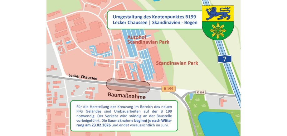 Achtung: Baustelle im Bereich der B199 / Scandinavian Park